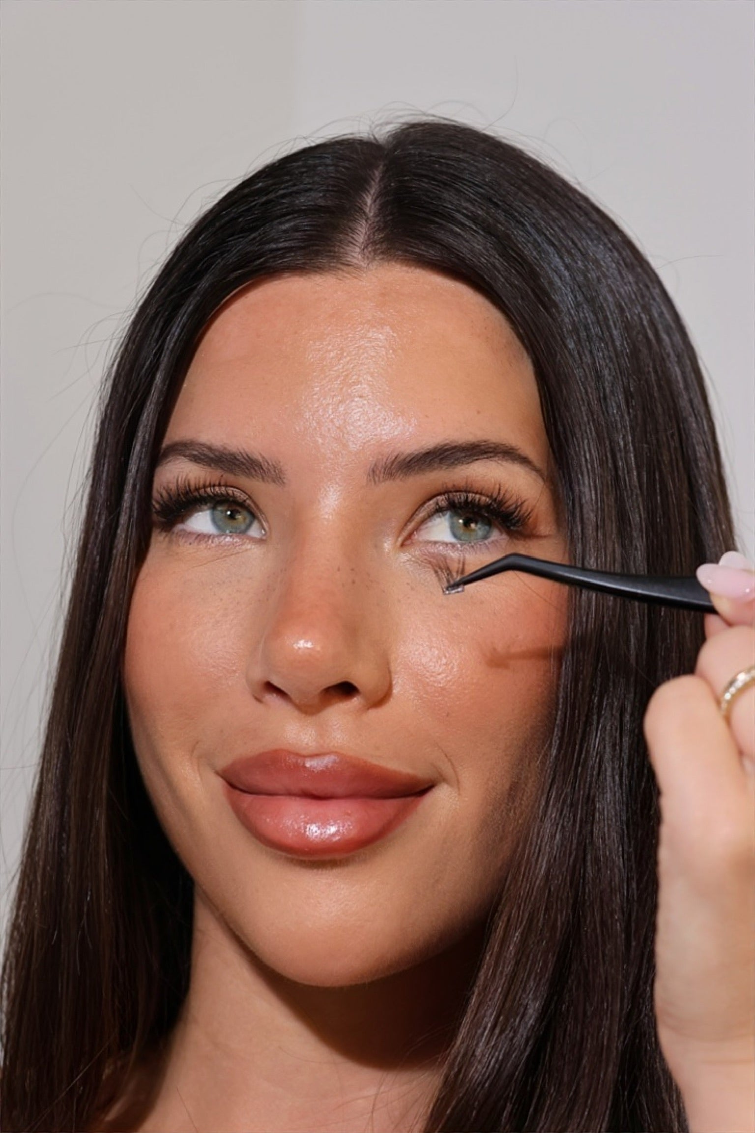 Gently place the lash underneath your lash line, starting from the outer corner and working inward.